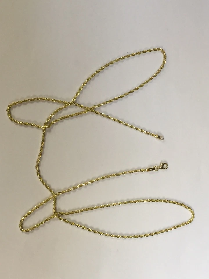 Catena/collana ciondolo corda taglio diamante massiccio 10 kt oro giallo 16" 2mm 3 grammi-