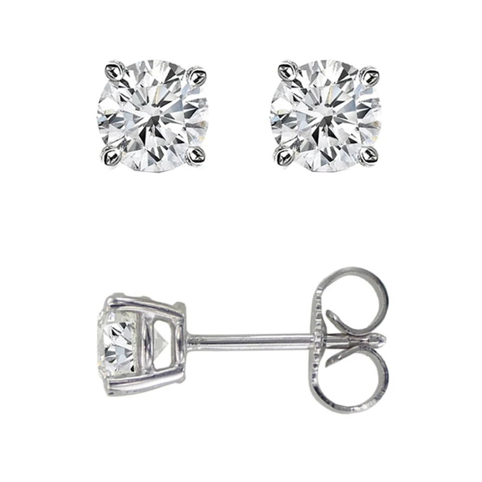 Orecchini solitario diamante J-K tondo vero naturale 0,05 ct in oro bianco 14 carati-
