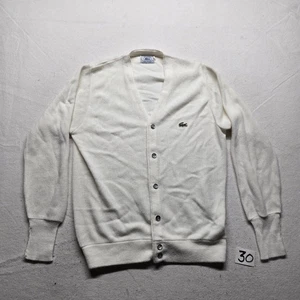Cardigan maglione uomo vintage Izod Lacoste bianco avorio Orlon acrilico M Medium-
