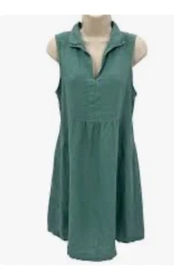 Mini abito donna Terzo Millennio senza maniche scollo spacco lino verde taglia small-