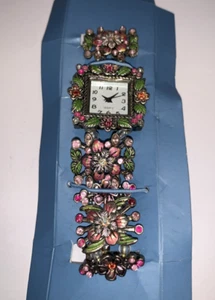 Orologio Avon Tono Argento Smalto Floreale e Strass Quarzo con Cinturino Elastico-