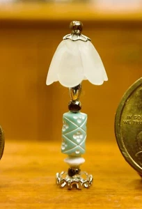 Casa delle bambole miniatura vintage crisnbone verde pallido salotto tavolo boudoir lampada_1:12-