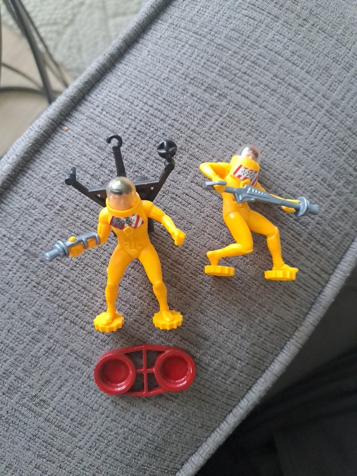 Vintage Britains Deetail Starguard Yellow Astronauts, 2pc Plastic Toy Soldiers
