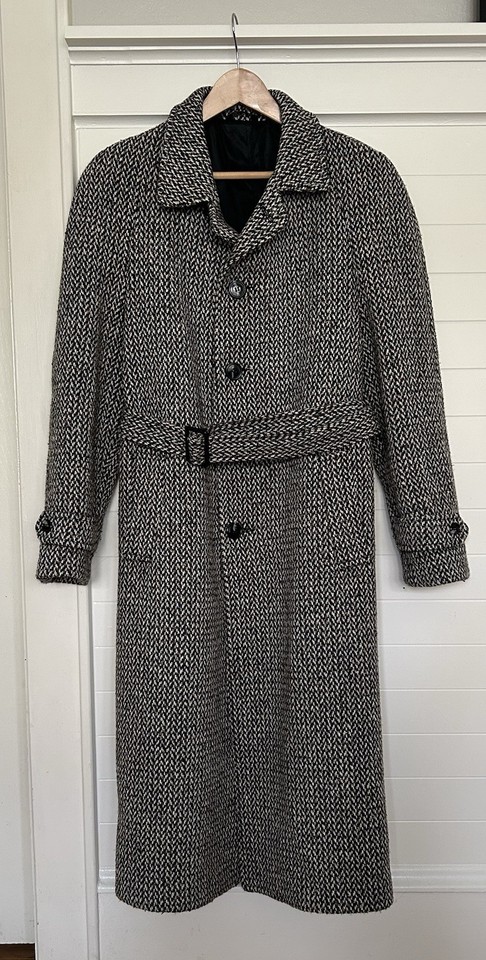 Cappotto lungo vintage americano uomo lana tweed cintura made in USA taglia 38 Medium-