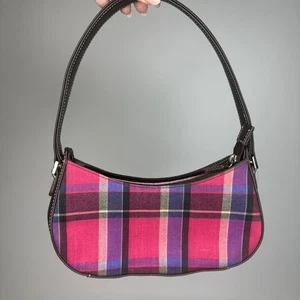 Borsa a tracolla piccola vintage Liz Claiborne a quadri rosa viola nera Y2k-