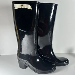 Stivali da pioggia Kate Spade New York Raylan fiocco donna 9 neri tacco alto grosso leggi-