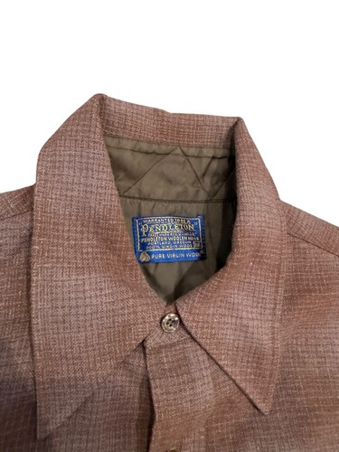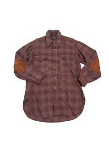 Vintage Pendleton Trail marrone plaid lana bottoni toppe gomito 15 1/2-