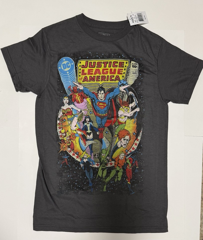 Maglietta Justice League of America DC Comic 100% cotone grigio Superman taglia S Hero-