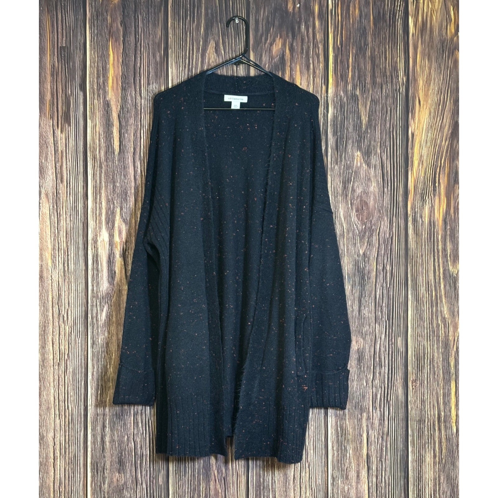 Maglione cardigan maglia Liz Claiborne aperto davanti donna XXL blu navy nero maculato-