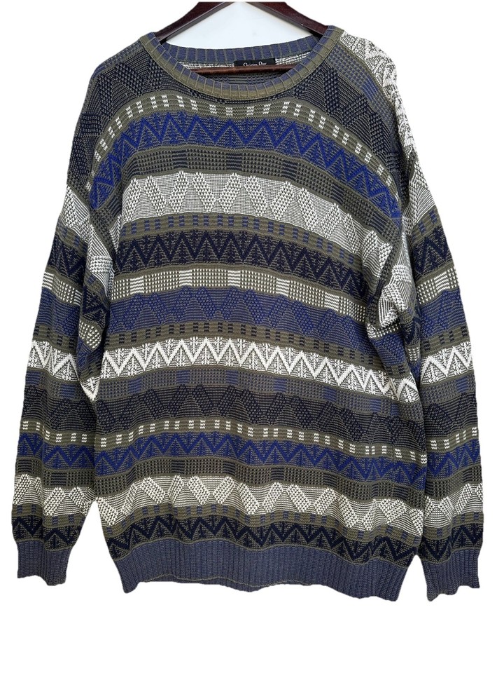 Maglione uomo vintage Christian Dior Monsieur Fair Isle taglia large cotone-