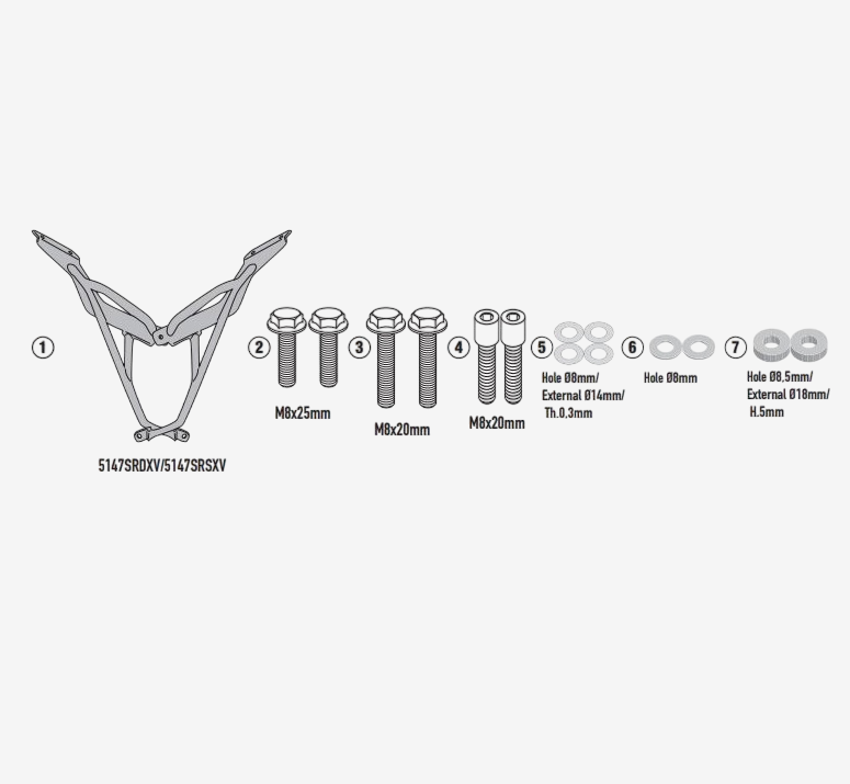 Kit attacco Givi SR5147. Codice prodotto : SR5147. Specifico per bauletti MONOKEY® o MONOLOCK®. Da abbinare alla piastra MONOKEY® M5, M7, M8A, M8B, M9A, M9B o alla MONOLOCK® M5M o M6M, o al portaborse in alluminio EX2M.