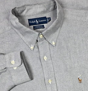 Polo Ralph Lauren vintage uomo 17,5-32/33 grigia con bottoni manica lunga pinpoint Oxford
