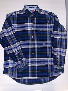Camicia Tommy Hilfiger adulto uomo grande rosso navy quadri bottoni manica lunga abito
