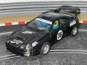 1539-Scalextric SCX Toyota Celica #35 tuneado repintado negro Coca Cola slot car