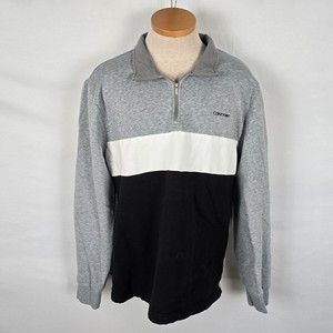 Calvin Klein Felpa Uomo XL Nero Grigio Bianco Colorblock Quarto Zip
