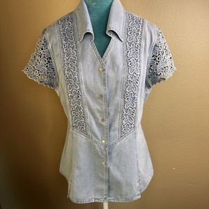 LAFEI- NIER donna M denim snap davanti aderente all'uncinetto gioiello western country