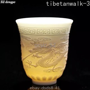 Grande tazza da tè in rilievo Mutton Jade tazza da tè in porcellana bianca una coppia di draghi