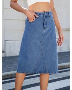 Everyday the Label Slit Back Midi Denim Skirt Women Light Blue Dresses & Skirts