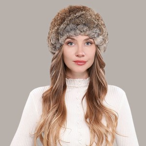 Sciarpa cappello donna vera pelliccia di coniglio Rex pezzo unico invernale caldo paraorecchie berretto neve EUR 66,10