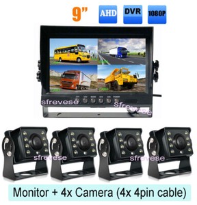 Kit 4CH AHD 1080P 9" monitor auto + 4x bus camion retrovisione backup telecamera retromarcia EUR 148,60