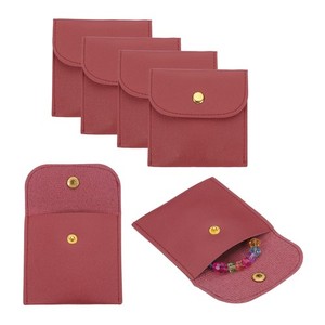 Borsa portagioie in pelle PU, 6 pezzi 8 x 8 cm - portagioie con pulsante a scatto (rosso vino)