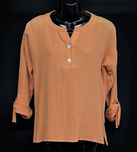 Top donna nuovo con etichette Tru Luxe Jeans taglia XS zucca albicocca arancione pieghe Henley EUR 14,85EUR 16,50