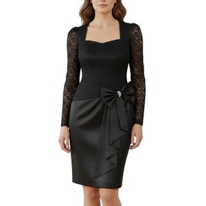 Abito vintage anni 80 sera di Pantagis nero pizzo manica lunga strass fiocco 9/10