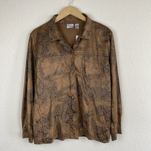 Camicia Chico’s taglia 3 XL stampa animalier marrone serpente bottoni western Y2k nuova con etichette
