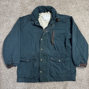 Giacca vintage INC Chore uomo taglia media verde con bottoni foderata in tessuto tasche