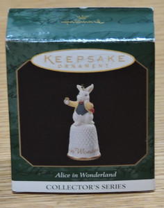 Vintage Hallmark Alice nel paese delle meraviglie coniglio bianco ricordo ornamento ditale 1997