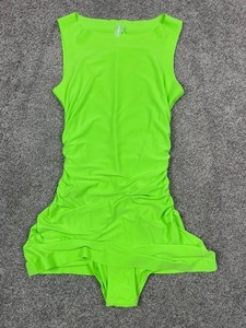 Abito Norma Kamali donna XS verde fluo increspato pickleball mini sportivo elasticizzato