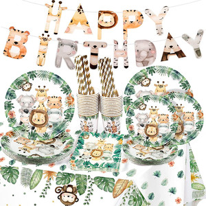 Giungla Safari Set Di Stoviglie Di Carta Usa E Getta per 25 Ospiti Feste Di Ccom