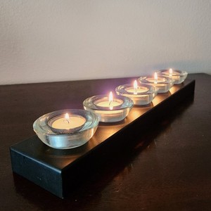 Portacandele Tealight moderno in vetro, centrotavola in legno nero 5 tazze, scandinavo