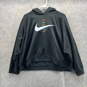 Nike Felpa con Cappuccio Donna XXL Nero Pullover Swoosh Multilogo Just Do It Center Swoosh