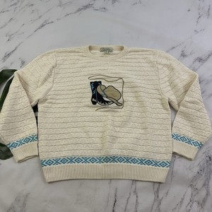 Maglione western Cabelas donna vintage Y2k taglia M blu panna ricamato cowgirl