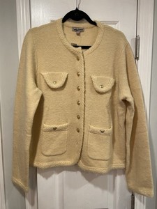J. nuova con etichetta Cardigan giacca donna Crew taglia L misto lana merino crean oro bottoni maglia EUR 81,27