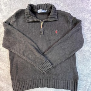 Polo Ralph Lauren maglione uomo XL nero quarto zip finto collo cotone maglia pony