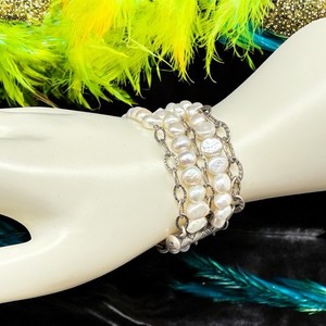 Bracciale Silpada Argento Sterling Perle d'acqua dolce 5 Fili Chiusura Scivolo - 7,25"