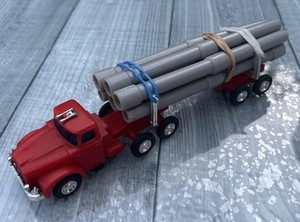 Lucky Toys Truffa Contractor Pipe Truck Rosso e Grigio Plastica Vintage anni 60 HK
