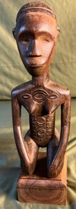 Vecchia statua vintage africana tribù Bembe arte tribale intaglio legno fertilità donna