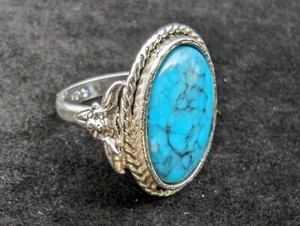 UNCAS Silver Tone Turquoise Ring Size 5 Cabochon set in Braided Design Vintage