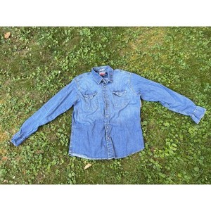Camicia western vintage anni 90 Wrangler Pearl Snap uomo grande L denim indaco made in USA