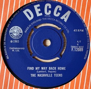 THE NASHVILLE TEENS FIND MY WAY BACK HOME 7" DECCA (1965) NR MINT MINUS ENGLAND EUR 5,670 offerte1g 6h 32m