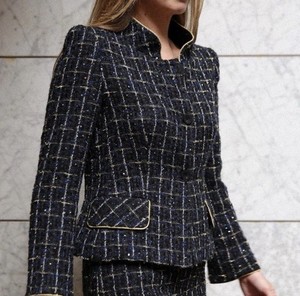 CARLA ZAMPATTI-SIZE 12-LUMINESCENCE TWEED BOUCLE NAVY GOLD JACKET BLAZER