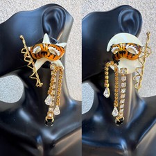 Orecchini pendenti vintage anni 80 2” tono oro opaco gelo acrilico sfera traforata