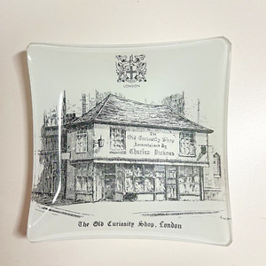 Piccolo posacenere in vetro quadrato bianco vecchio negozio Curiosity London Charles Dickens EUR 3,44