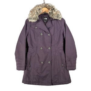 Giacca North Face donna XS viola parka doppiopetto collo pelliccia cappotto imbottito