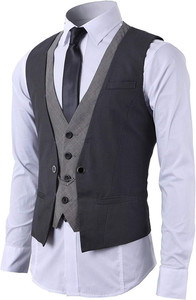 Gilet Uomo Slim Fit Elegante Casual Smanicato Scollo a V Panciotto Matrimonio Co