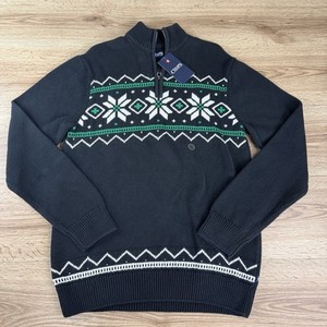 Maglione Chaps uomo taglia small nero/verde/bianco stampa fiocco di neve 1/4 zip