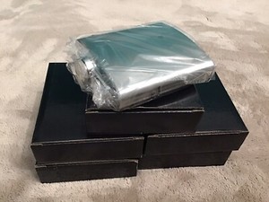 Fiaschetta per fianchi in acciaio inox 6 oz da ripiano superiore set di 25 fiaschette nuove con scatola EUR 103,27